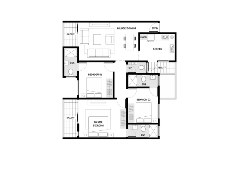 Welcome to the pinnacle of Memphis Residency — our exclusive three-bedroom penthouse, where every bedroom is a private ensuite retreat. Spanning an impressive 136sqm, this is a home designed for those who appreciate the finer things without sacrificing warmth or comfort. The fully enclosed kitchen is fitted with sleek cabinets and a double sink, keeping your entertaining spaces elegant and uninterrupted. Every bedroom comes with built-in wardrobes and a dresser, offering generous storage wrapped in refined style. Step onto your balcony and take in the views that only the top floor can offer. Finished with ceramic and porcelain tiles and modern sanitary fittings throughout, the penthouse is not just a home — it is a statement. A rare opportunity to own the best address in the building.